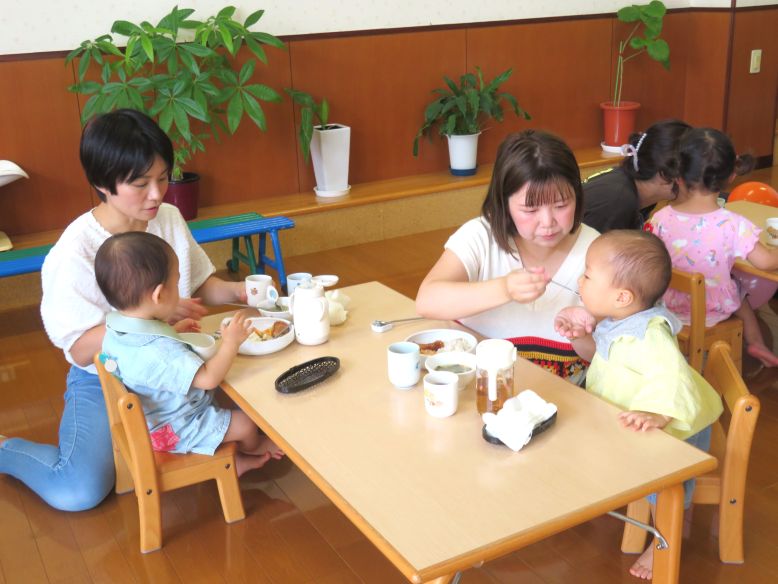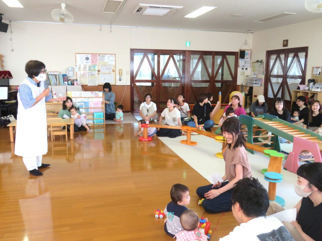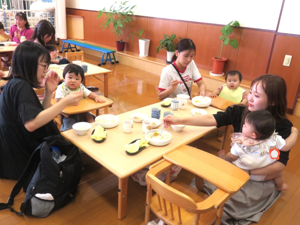 【初めての離乳食】保育園の給食の先生が離乳食の作り方について実演しながらお話しました。