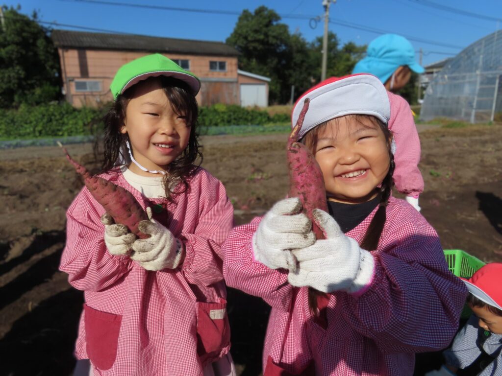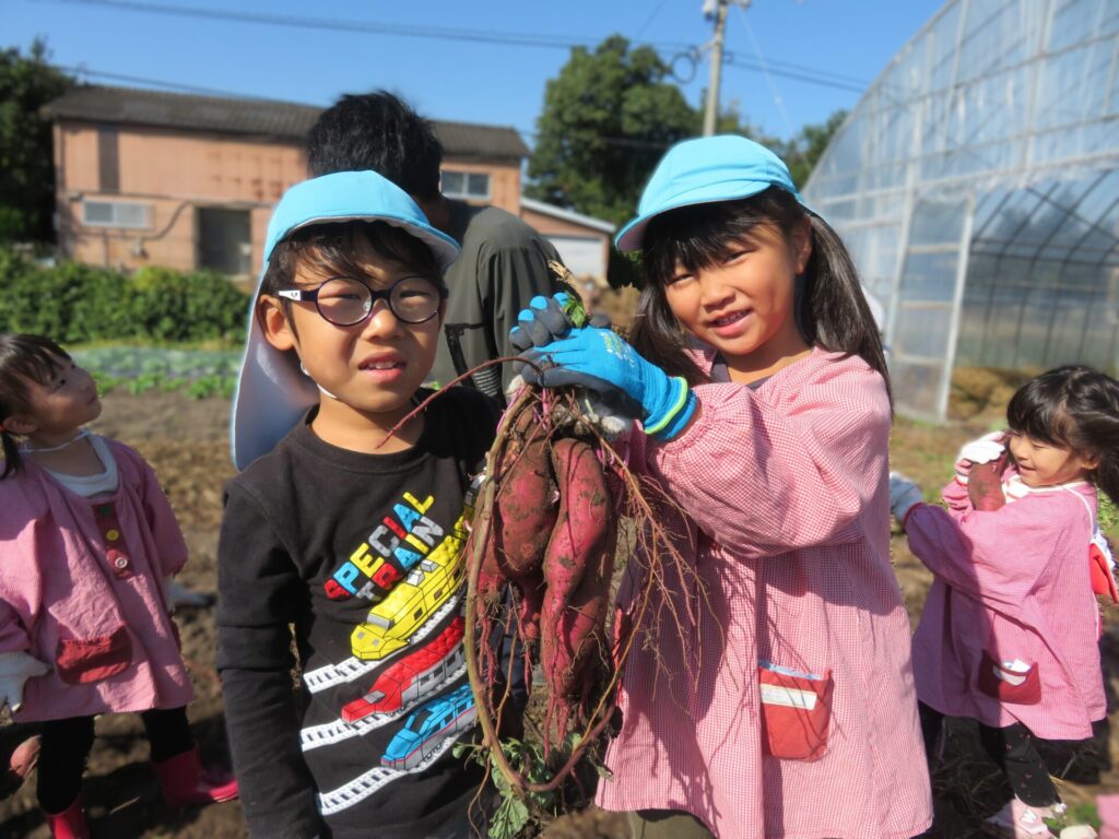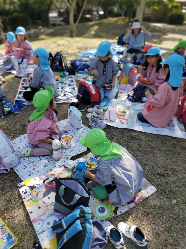 たくさんお芋が採れて、満面の笑みの子ども達。芋掘りの後は高畑公園に移動して、みんなが楽しみにしているお弁当の時間です。