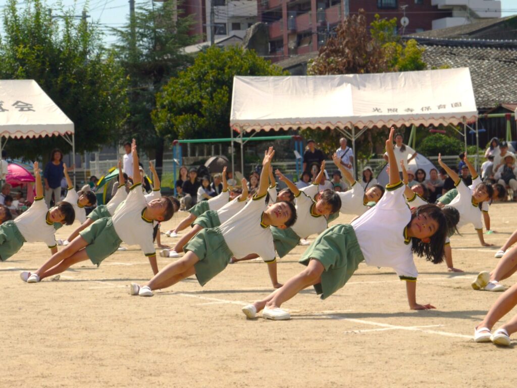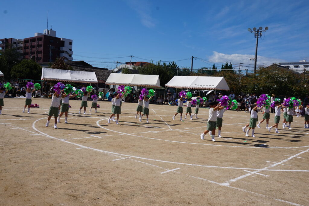 眩しい日差しの中、今まで頑張ってきたことを出し切った子ども達。笑顔いっぱいで踊るかわいらしい姿、力強い組体操、みんなと息を合わせて動くマーチング、ゴール目指して駆け抜ける姿などすべての事に成長を感じました。