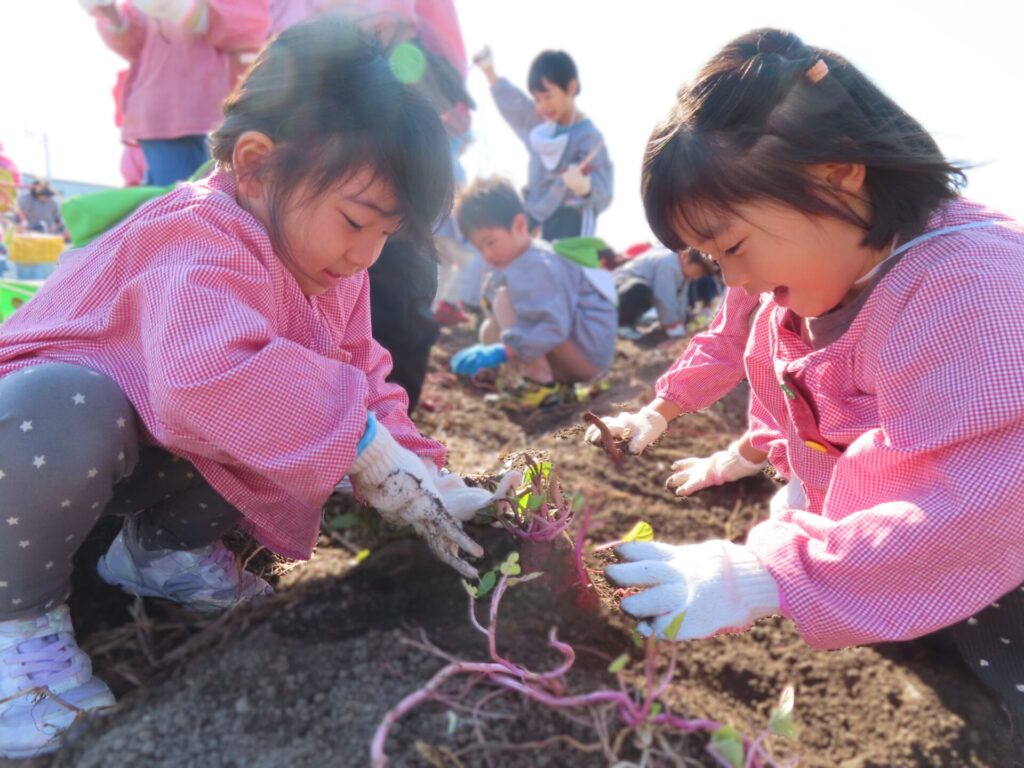 11月は、バスに乗って芋掘り遠足へ行きました。